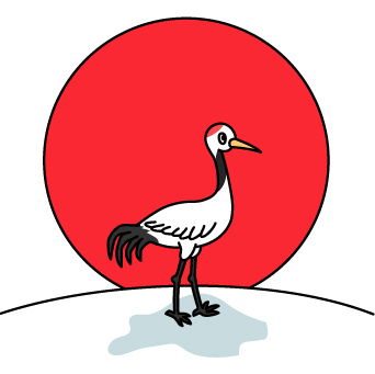 初日の出と鶴