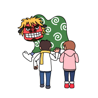 獅子舞と見物人